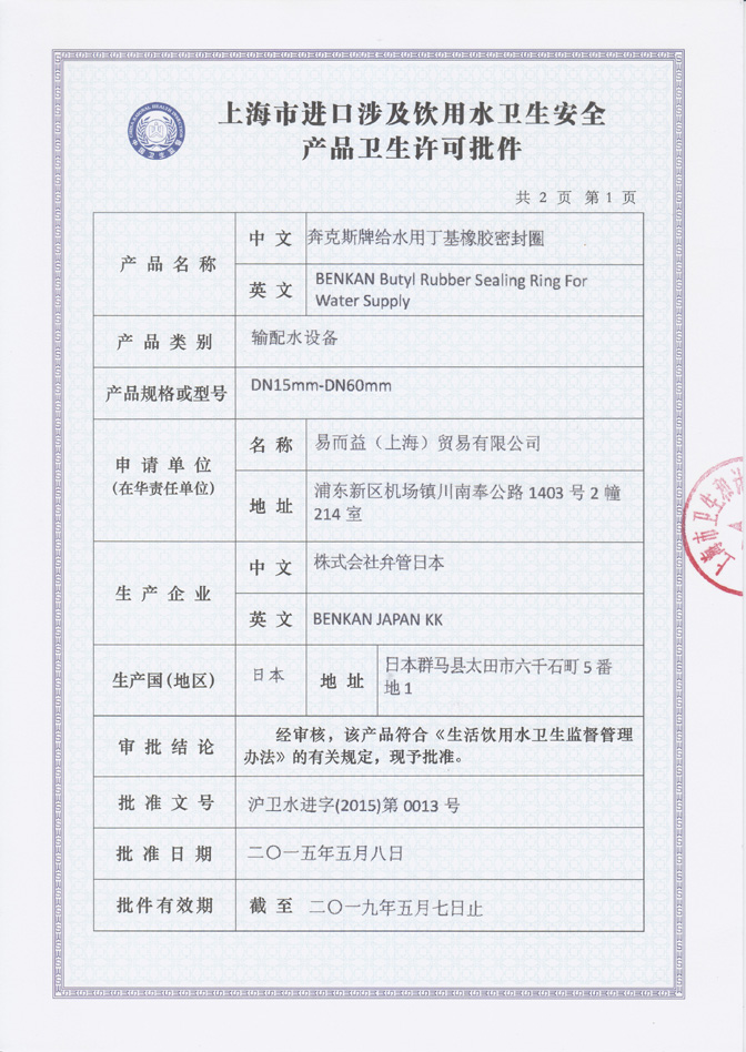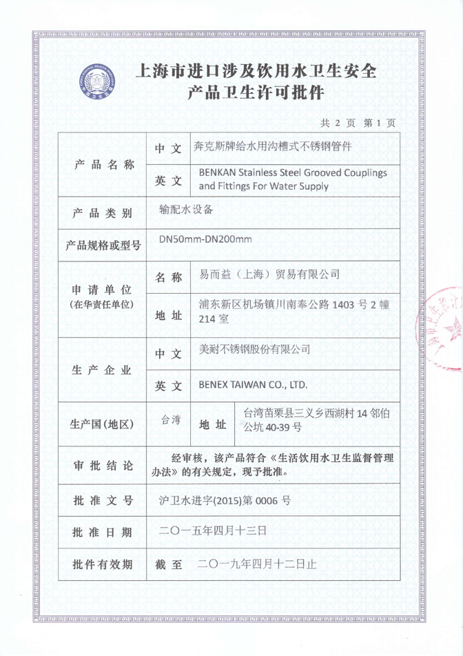 • 溝槽管件衛(wèi)生許可