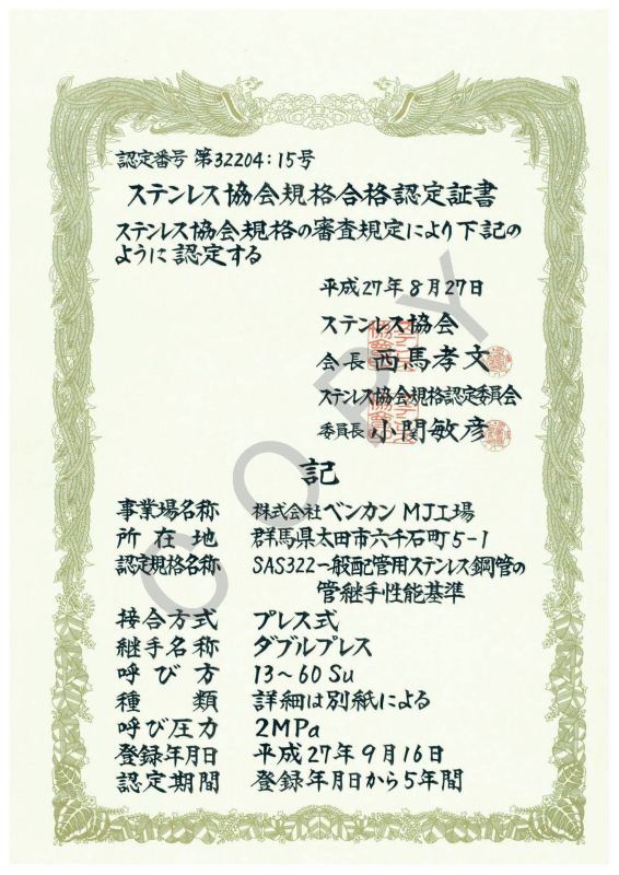 • 日本不銹鋼協(xié)會(huì)認(rèn)證書