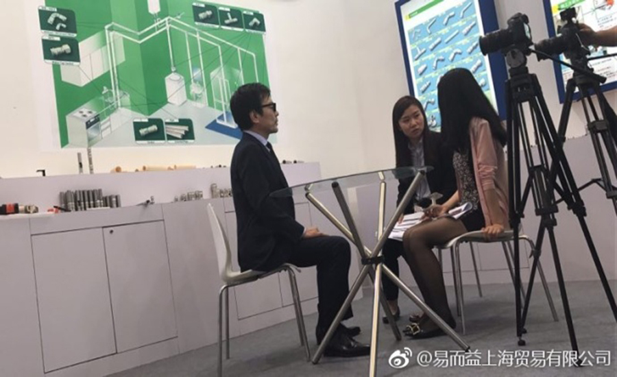 奔克斯不銹鋼水管,在上海新國際展覽中心接受電視臺(tái)的專訪????